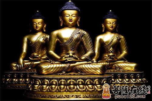三宝佛也称三世佛, 三个佛世界的佛, 中间是裟婆世界的中央现在佛 释迦牟尼佛, 左胁东方净琉璃世界的药师佛,右胁西方极乐世界的阿弥陀佛也称横三世佛。寺庙大雄宝殿所供一般三宝佛,或者华严三圣。