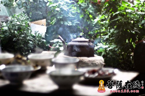 《晋书·艺文志》记载,僧人单道开在山中坐禅,夜不倒单(昼夜不卧),不食五谷杂粮,每天只吃由松姜等制成的药丸数粒,饮茶苏一二升而已。唐代佛教寺庙更是常常举办茶宴,谈佛理,论茶道,佛法妙理与茶道清虚渐渐融为一体。自“三武一宗”法难之后,农禅并举的禅宗一枝独秀。地处偏僻山区的禅僧大多务农为生,他们种植茶树,精心研习制茶、烹茶之术。刘禹锡曾有诗形容禅房制茶过程云: