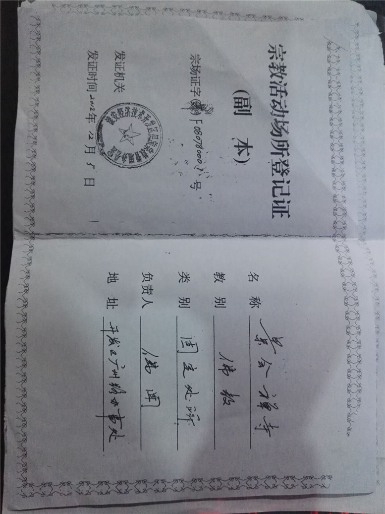 ▲景会寺正式批为宗教合法场所