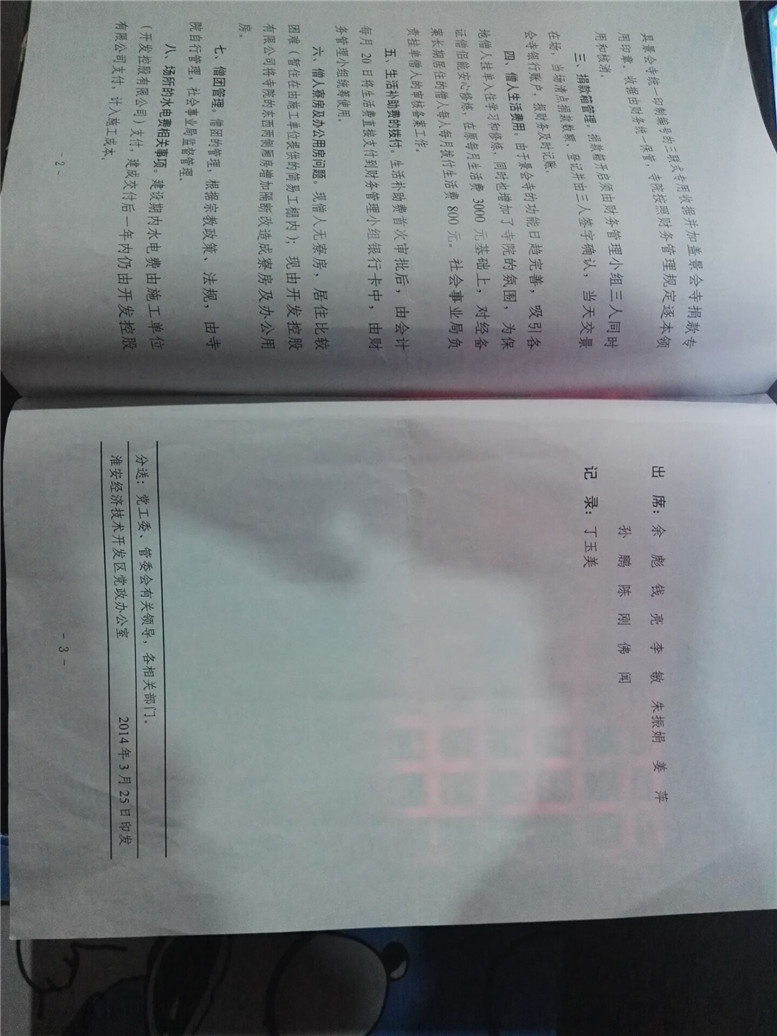 ▲2014年3月11日将景会寺建设期间财务管理召开会议