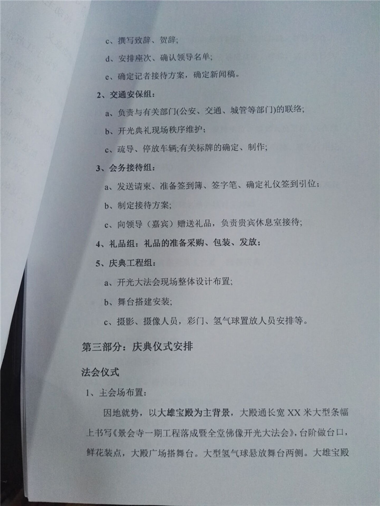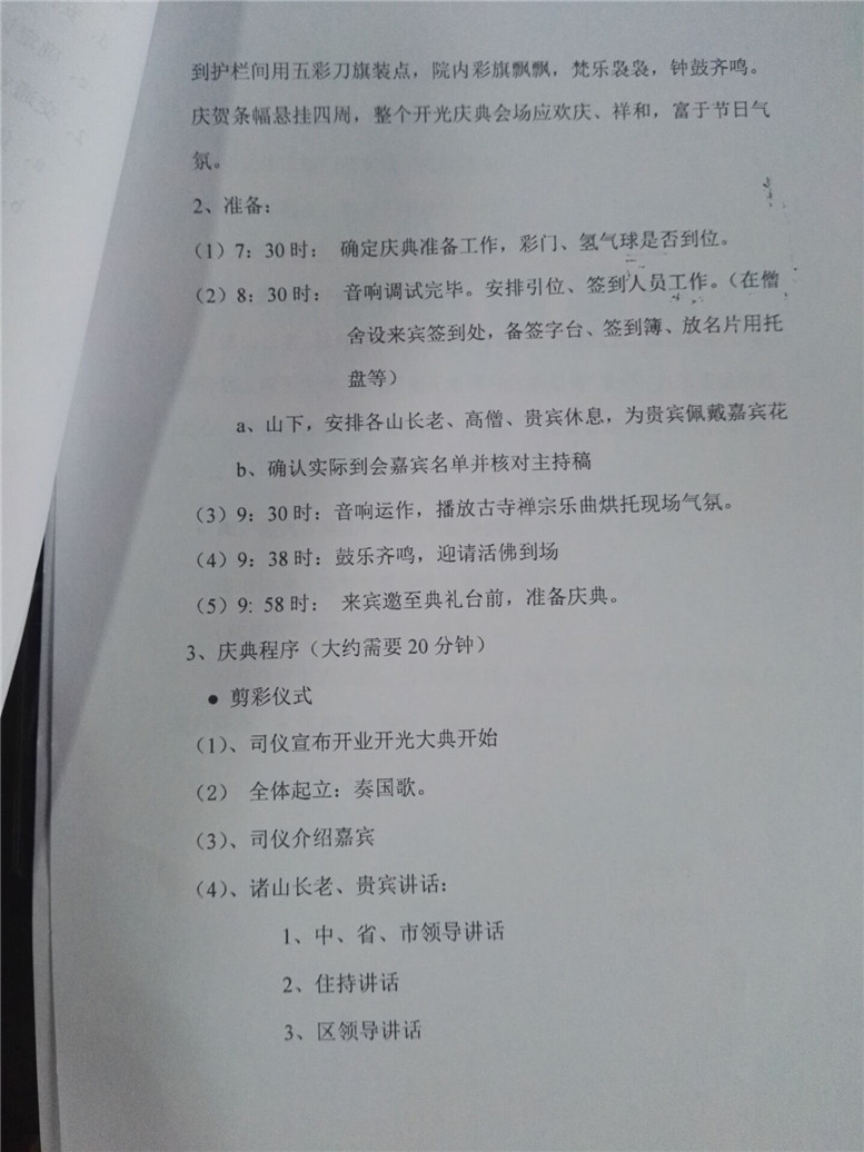 16.社会事业局骆观副局长,让法师在具体拟一份一期工程开光策划书,共四页纸。
