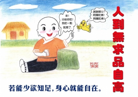 :太多的欲望就是痛苦。生死轮回中的种种疲劳烦恼都由贪欲引起。减少欲望,身体和心灵就会安闲自在。