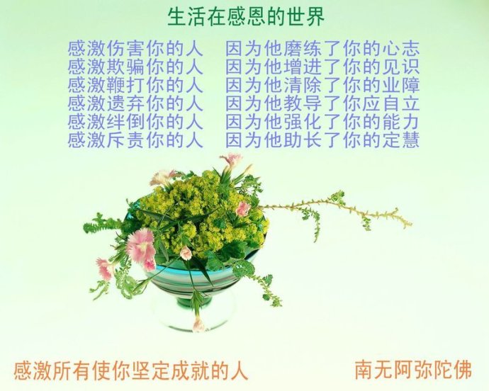 〖记得耀一法师在讲:感恩最吉祥!只有懂得感恩的心才是最美的!让我们怀着一颗感恩的心,去善待以上十种恩,只有懂得感恩的人!才是最值得尊敬的!让我们共勉!最后送上一句吉祥语:阿弥陀佛!祝福大家吉祥如意!喜乐常伴!〗