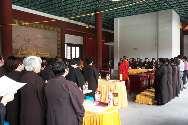 8月2日,江苏昆山开发区中荣金属制品厂发生了重大爆炸事故。8月3日16时30分,云南省昭通市鲁甸县发生6.5级地震,再次牵动了全国人民的心。2014年8月10日13:00,江苏淮安四众弟子在景会寺卧佛殿举行了三时系念超度法会。佛闻法师恭敬拈香,礼拜世尊,并带领全寺僧众、护法居士,为灾难中的生者祈福、为亡者超度。