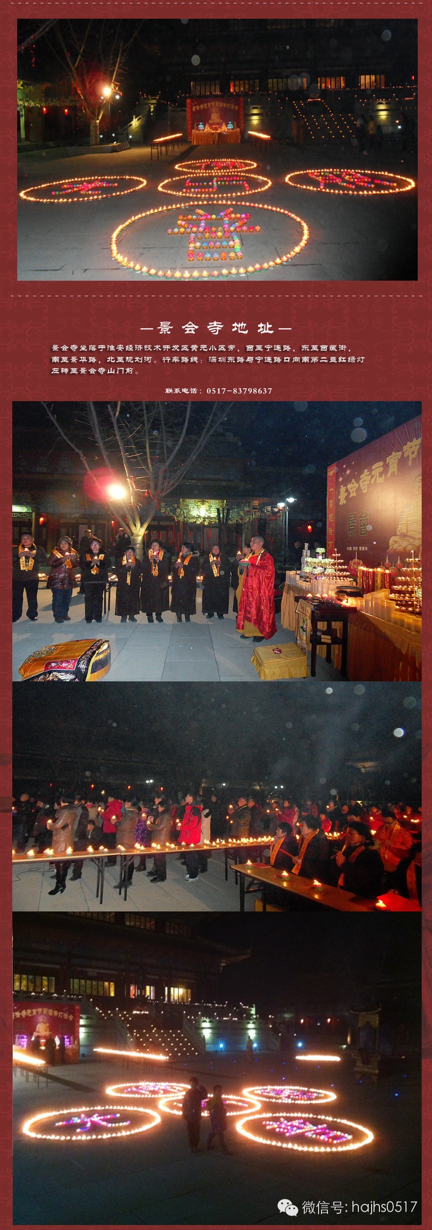 景会寺正月十五传灯祈福法会在大雄宝殿举行,法会由点灯、传灯、佛教梵呗演唱、烟火施放等环节组成。香游客手捧象征着光