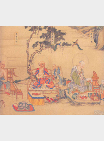 笃信佛教的乾隆皇帝对《大理国梵像卷》极为爱惜,命当时宫廷画家丁观鹏,在“四大活佛”之一的章嘉国师指导下重新整理和临摹,对《大理国梵像卷》进行勘误,将神像及人物的名位和序列重新排列。此项集佛学、艺术、历史及民俗研究的重大工程,历时数载,至乾隆三十二年(1767)完成,题为《法界源流图》,里面共绘制典故98组,千手观音、财神、形态各异的十八罗汉、神像630多尊,每一尊都有一重福佑,以及龙凤虎狮等吉祥神兽50多种、亭台楼阁、山水花草等,展现了富贵吉祥、福寿安康的美景。