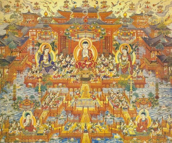 阿弥陀佛不仅在中国家喻户晓,乃至在整个法界无量的刹土当中,他也是知名度最高的一尊佛,这是由于十方无量无边的诸佛都伸出广长舌相,称扬赞叹阿弥陀佛的名号的功德、净土的庄严。