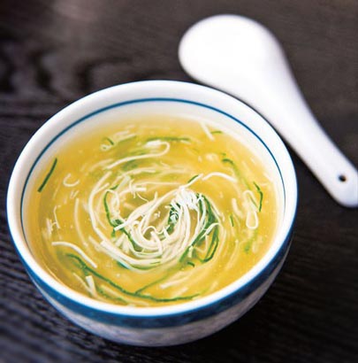 细如发丝的豆腐要经得起火煮而不烂为一团,其诀窍在于先将豆腐丝放入开水锅中过水,一来可以去除豆腥味,而且使豆腐丝条不易弄碎。据说,当年干隆皇帝曾品尝过此菜,“文思豆腐”还一度成为清宫名菜。