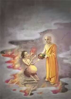 目揵连焦急忧虑,于是去问佛陀应如何救度。佛陀告诉目揵连尊者说:“你母亲罪根深重,曾有五百世的悭贪,纵使你神通第一也无法解救她的苦难,必须靠十方众僧大德威神之力才能得到解脱”!到七月十五日那天,是解夏日,又是“佛欢喜日”,亦是众僧自恣日。所谓自恣就是自己检点,如发觉自己有过失,应对人发露忏悔:如任何人犯过,亦应对僧众忏悔。当日一切僧众,均精持律仪,身,口,意三业清净,这时候设斋供僧,功德最为殊胜。故此佛陀咐嘱目揵连尊者,在七月十五日那天,准备饭食百味五果、汲灌盆器、烧香燃灯,将世上最珍贵的食物都放在盂兰盆内,供养十方大德众僧。当众僧念咒加持,祈福消灾,使在世人增长福慧,先亡超度。后来目揵连尊者得到佛陀教化在七月十五日设盆供养及斋僧,合各大德威神之力,使母亲得以脱离饿鬼之苦。根据经中佛所示,如果能在功德、胜会中供佛僧大布施,可令现世父母、六亲眷属,能脱离三途,衣食丰足。乃至七世父母都能脱离饿鬼之苦,生于人天中,福乐无极。如父母在,更能福乐百年、长寿无病、无一切苦恼之患,所以身为佛子,为修孝道,应常念及过去仍未解脱之先祖父母,于盂兰超幽法会中供养法师大德,燃灯供佛作大功德,以报父母之恩乃利乐解脱十方孤魂饿鬼众生。佛说:从今以后,凡佛弟子行慈孝者,都可于七月十五僧自恣日、佛欢喜日,备办百味饮食,广设盂兰盆供,供养众僧,以使现世父母增福延寿,过去父母脱离恶道。