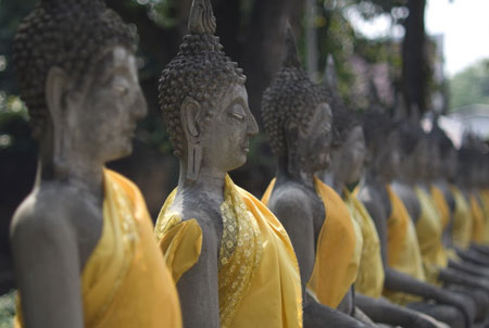 世尊在舍卫国祇树给孤独园弘法时,另一个城市中有五百位商人要到远地作生意,不料,却在旷野中迷失了方向。当时天气炽热,附近又没有水源,每个人都又累又渴。在孤立无援的情况下,商人们开始担忧自己的安危,于是个个跪拜天神,祈求护佑,然而,却得不到丝毫回应。
