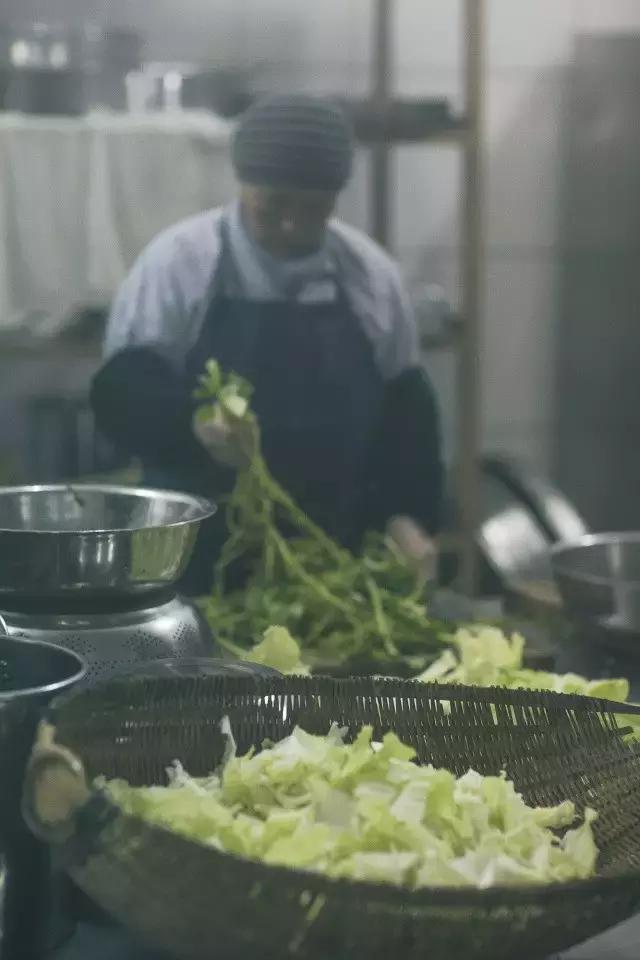 大寮是寺院做饭的地方,左侧供奉着监斋菩萨,调和百味。师父们做饭前须得先拜斋菩萨,饭菜的味道会格外好;用斋前,也会将最新鲜的饭菜供奉佛菩萨。