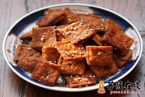 3.喜欢吃有嚼劲一点的可以将豆干平摊在盘中自然风干一夜。