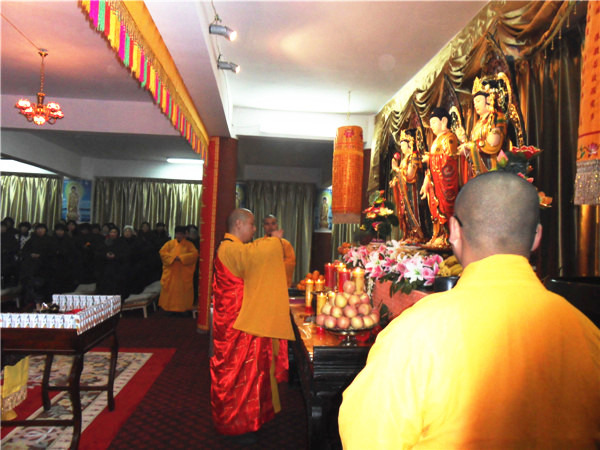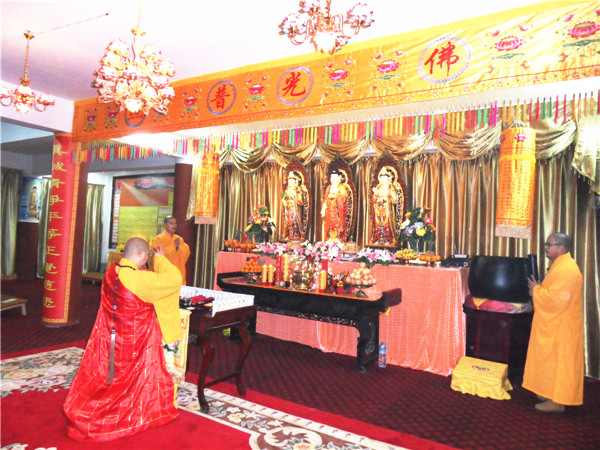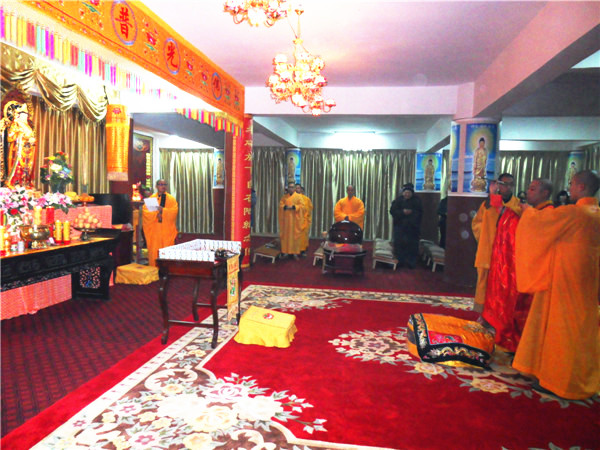 2013年农历十一月初十(公历十二月十二日)上午9时,景会寺念佛堂落成剪彩洒净暨佛像开光仪式隆重举行,佛闻法师为佛像开光主法进行洒净,拈香唱赞,四众弟子虔诚礼拜,讽诵经咒,香花迎请十方诸佛降临法会道场,祈愿十方诸佛光明普照一切众生,杨枝净水遍洒三千大千世界;佛闻法师为西方三圣佛像开启依正庄严之面相,开点眼、耳、鼻、舌、身、意之灵气,以满众生之愿,利益一切有情。本届弥陀佛七法会是日在此拉开序幕。